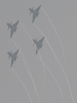 編隊。これスモークじゃなくて、なんかです。(笑)クローバーリーフターンみたいな航跡の旋回でした。