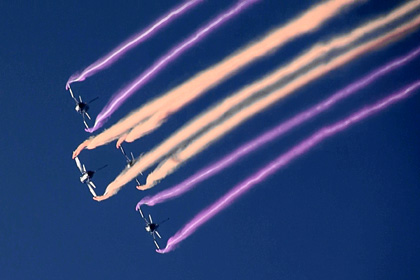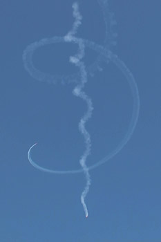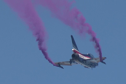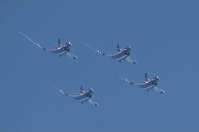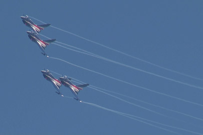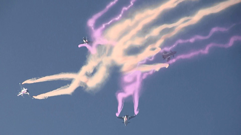 うっへへーい!現役の戦闘機を使ったアクロチームなんて贅沢ですよね〜。しかも4.5世代機?見た目は、ね。