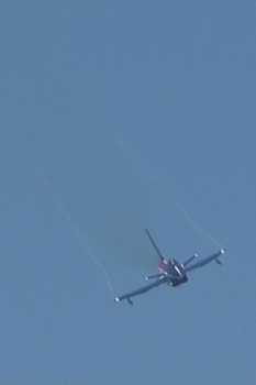 さらに斜めから。すごい、J-10がベイパーに包まれちゃったよ!