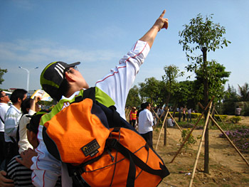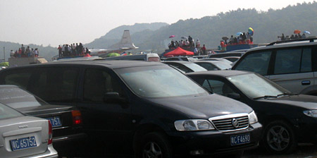 で、タクシーには会場反対側まで連れて行って欲しいのですが、へたれタクシーは「そこまではいけない」と弱音を吐き、駐車場でおろされました。まあ、それも想定の範囲内。そして午後の八一の飛行までに間に合えば充分なので、のーんびり歩いていくことに。