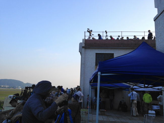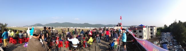 エアショー開始を待つ時間にも刻々とJ-20情報がもたらされます。○時○○分に○機でフライバイ、○曜日と○曜日もあるかも、などなど…
