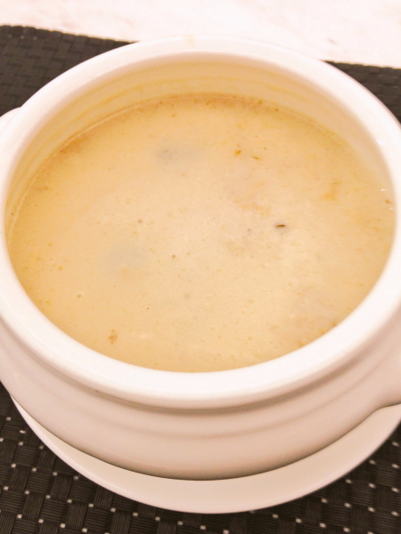 帰りの便は深夜です。暇だ。。。そしてお腹空いた。。。Y氏と香港空港でお食事です。とても、おいしかったマッシュルームスープ。