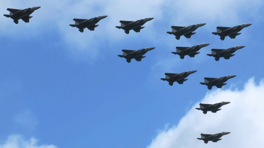 なんとF-15の12機編隊です!最近また少し編隊飛行が復権気味だよね。