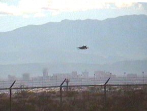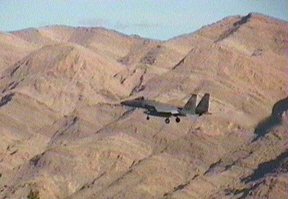 遙か遠くのラスベガスの街をバックに離陸するF-15。