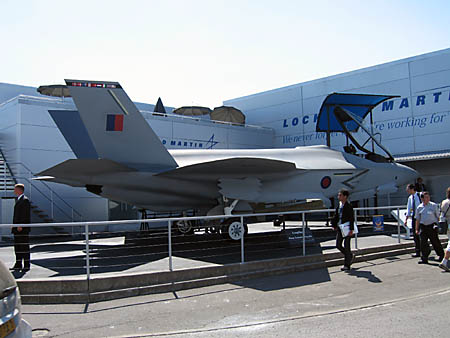 ロッキードとか大きいメーカーは雑居房での雑魚寝展示(ひどい言い方:)ではなく、自分のお家を建てています。しかもヒコーキを持ち込んでます。これはもちろんモックアップですけど、F-35。今回はもちろんイギリス軍仕様です。