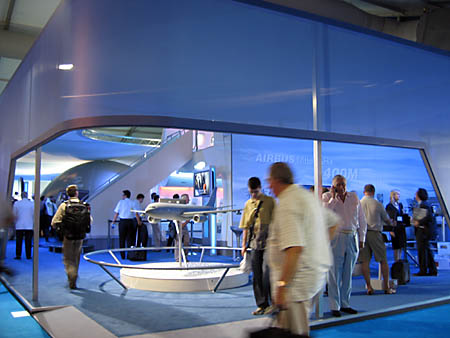 また屋内!エアバスのブースもでかいなあ。前に写ってるおっさんもでかいなあ。