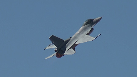 対してF-16Aは機体重量自体がCに比べて軽いので、エンジン推力では劣っても運動性能は抜群です。この日はその比較が出来て面白かったです。
