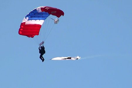 ところで、アメリカ軍のパラシュートデモチームといえば陸軍のゴールデンナイツ、海軍のリープフロッグが有名ですが、実は空軍にも「ウィングス オブ ブルー」というチームがあります。知ってました??私、知りませんでした。(笑)