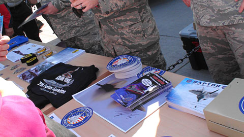 C-130の翼の下で、F-22デモチームとF-22の機体の持ち主の部隊がお店を開いていました。この日はホロマンから。