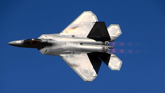 で、テールスライド。水平尾翼をふわふわさせてバランスを取っています。ラプターが登場した頃、ファンの間では、機動性はフランカーには敵わないだろうという見方が多くありました。実際はぜんぜん違います。フランカーを凌駕します。で、ステルスに最新の戦闘システム、そりゃもうラプターさんが圧勝です。世界最強とかそんなレベルじゃないっす。まったく別格、別物といって良いでしょう。中学軟式野球大会にメジャーリーグのチームが参加しているようなもんです(しかも大人気なく本気で)。要するに、反則です。ついでに金もかかる。(笑)