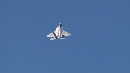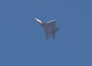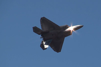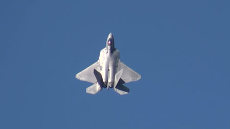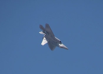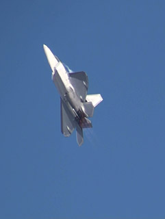 で、そのままの姿勢で機首を振っています。つまり、フラットスピン状態です。まあ、ゆっっっくりですけどね。完璧にコントロールされてます。06年、まだデモチームが発足する前にエレメンドルフのエアショーで“フライバイ”の名の下にF-22がフライトを行いました。この際、待機している間にかなり高い高度ではありますが、バックフリップやパワーループ、そして今では見ることの出来ない“コブラ”機動もやっているのが会場から見えていました(むしろ見せてたんでしょうね。)