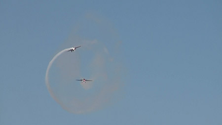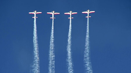 エアロバティックスなどではソロで暴れるエクストラ300ですが、チリ空軍は機体の能力に頼るばかりではないしっかりとしたフォーメーションワークも見せてくれます。