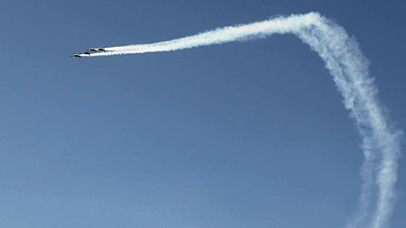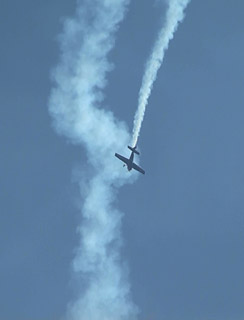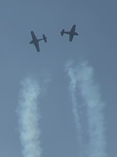 これもねー。真ん中の機体にしてみれば、普通の水平飛行をしています。エクストラの水平飛行なんて、エアショーではなかなか見られないですよ!(^ー^;)