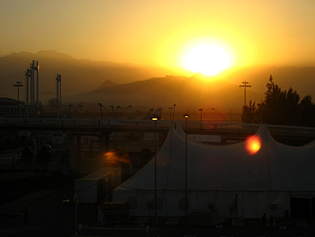 またまたアンデス山脈に日が昇ります。私的にはチリ最終日。この日も快晴。良い日になりそうです。