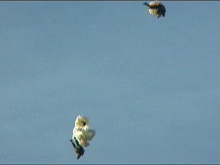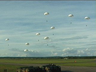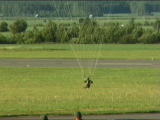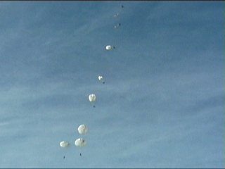 なんとか傘は開きました。お陰でパラシュートがぜんぶ接地するまでずーっと待ってる必要はありません。みんなすぐに地面に到達。
