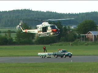 で、走ってる車を使って救難を見せるという、不思議なデモを行いました。これで第2回のフライト終了。この頃すんごい寒くてさあ。さすが北欧?早く終われ早く終われって思うのに、けっこう次から次へと飛ぶのね;疲れました。私としたことが;;