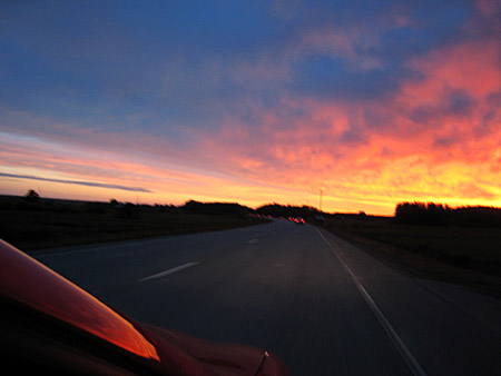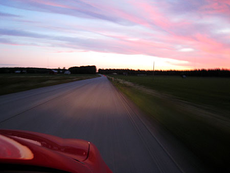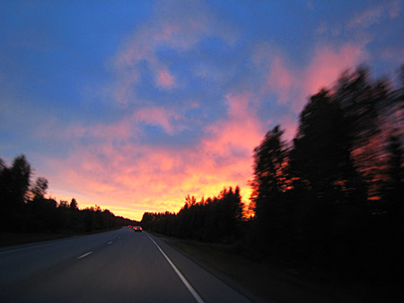 宿泊地VAASAに向け、白夜の中をレンタカーで走ります。そういえば19時くらいからずーっと夕方です。