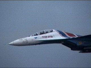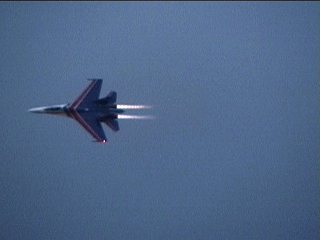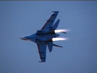やっぱり柔らかい空が素敵。Su-27がやってきます。なんかすっごい静かなイメージじゃないですか??