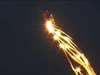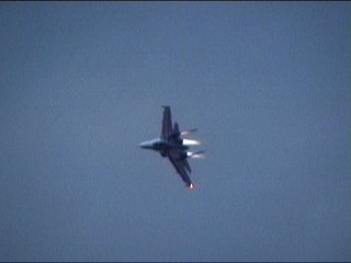 A/Bの炎がゆがんで見えるぐらい急激な旋回をしています。すごいな。