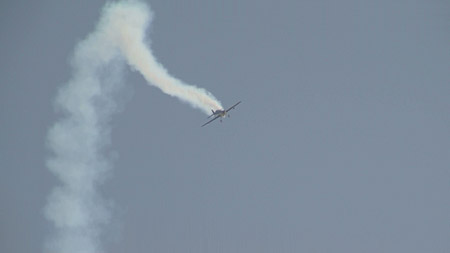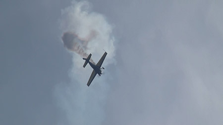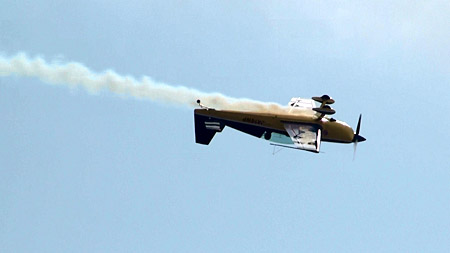 エクストラ300Lで「ありえない」飛行をしています。うひゃあ!です。久しぶりに観客のおばさんの悲鳴を聞きました。(笑)