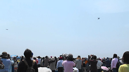 で、エーゴの通信が会場に流され、なんかちんぷんかんぷんの中でF/A-18が突っ込んできました!F/A-18のAGG、すんごい迫力です。ビューンときて、ビューンと飛び去ります。ごめんねボキャ貧で。(笑)