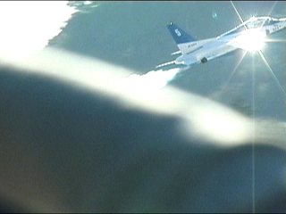 そして、タッククロス。家の庭でインコの鳥かごを洗ってたら白と青のT-4が飛んでいくのが見えたっけ。なんか妙に懐かしいなあ。部屋でボンヤリ東の空を眺めてたら、突然ブルーのT-4が現れたことがあったっけ。しばらくその場でホールドするT-4、そのうちもう1機現れた。合流して、岐阜基地に降りていった。IRAN入りだったんですね。みんな93〜99年頃の思い出です。学生だったから時間余裕があったんだ。(笑)