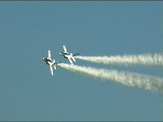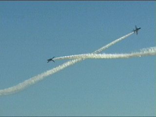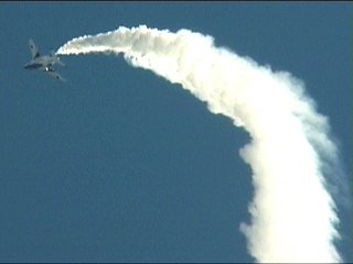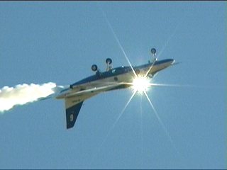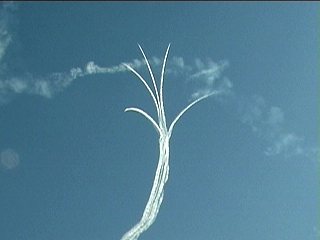 はい、5番機ブレイク。そういや96年、T-4ブルーデビューの年にかかみがはら航空宇宙博物館の中でブルーのメンバーさんにぐうぜん会いました。ロケットを作ろうのコーナーに、当時の2番機さんが作ったロケットが残されてた。95点だった。さすがだと思った。で、自分でやったら100点だった。こうやってカンチガイしていくんだろうな。(爆笑)