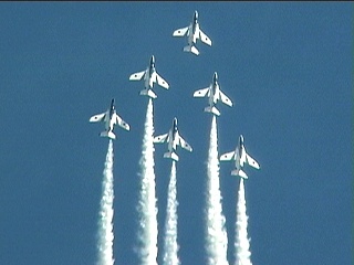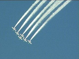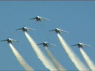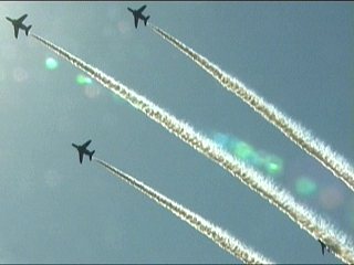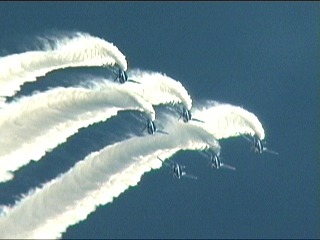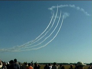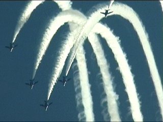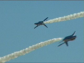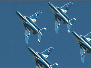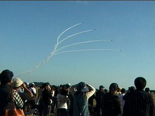 あれは98年だったかな…あの頃は金曜日には展開していました。で、金曜日に何気なく10エンドを通りかかったら思いがけず予行開始!!あの時初めてエンドでブルーのフライトを見ました。タッククロスで2回目のクロスに向け、ソロが上空から降りてくる時に自分に向かって来るようですごい迫力だったのを今でも覚えています。あの時は晴れてたけど1区分〜3区分が混ざってた覚えがあります。
