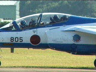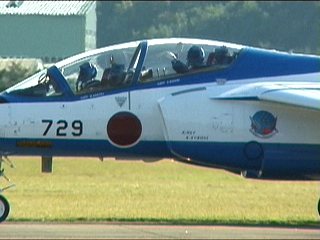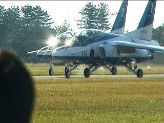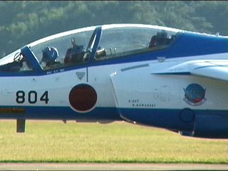 だな、間違いなく。T-4、各務原に里帰りです。あーこれも懐かしい!!あれ何年だ??93年か?T-4ブルー初号機がカラースモークのチェックをした時のことを覚えています。学校から見えたんだ。緑だった。すげー!!って思わず見とれてた体育の時間。(笑) そして、近くで見てやろうと高校を抜けて岐阜基地エンドに出向き、持ち物を用水路に落としたあの日。(爆笑)ええ、岐阜基地の正門で事情を話したら、熊手、梯子を装備した自衛官が4人、スクランブルしてくれましたよ。あの時はお世話になりましたー!(^-^;)