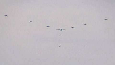 これが飛行開発実験団が開発した新編隊、3D編隊だそうです。さすが飛行開発実験団、編隊まで開発してるのかあ。(笑)