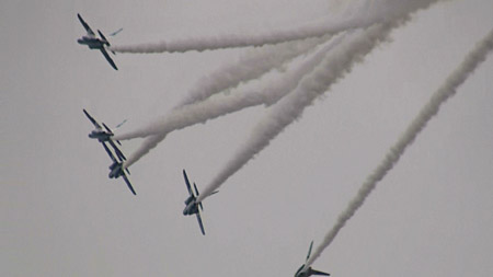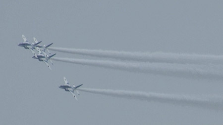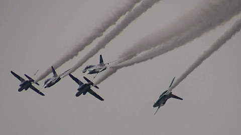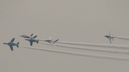 でもこれ、ホントにブルーがやったら面白いんでは??真ん中2機、右翼2機、左翼2機でスモーク引いて見せたらかなり面白そうです。