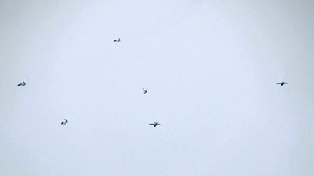 なるほど、前から見るとY 、横から見ると > となるような隊形なんですかね。つまり、左翼と右翼は、それぞれ少しずつ後ろ上方に位置してるのかなあ。
