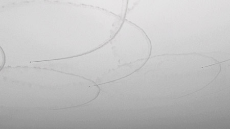 桜に向けて散っていきます。これまたかっこいい。参照点の少ない空で、どうやってこれだけバラバラな位置を決めて保持するんでしょう。凄いものです。