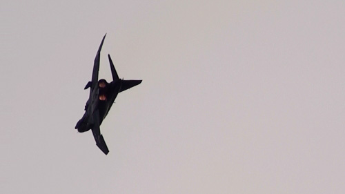 タンク無しのほぼクリーン形態で躍動するF-4、しかも気温が低いため、物凄い元気に飛び回ります。こんなファントム見たことない!!