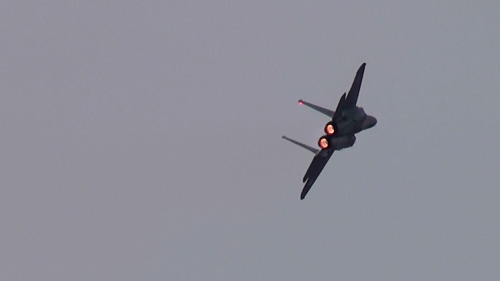 どかーん。なんか、朝からずっと戦闘機ばっかり飛びっぱなしなんですけど;