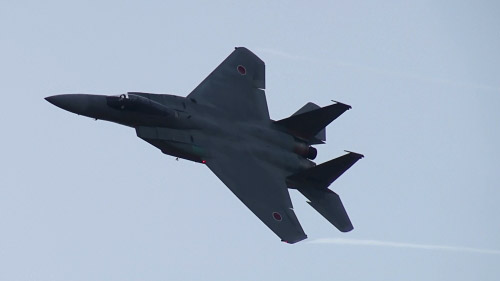 ノータンクでぐいぐい飛び出していこうとするF-15を押さえ込む!飛実パイロットの技量は世界一だぜえ!・・・、え、言い過ぎ?いいじゃん、地元だもん、エコヒイキしまくりだぜ。(^ー^;
