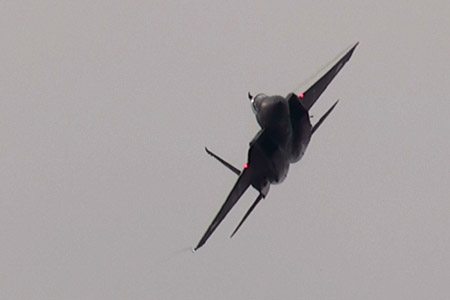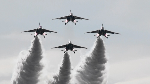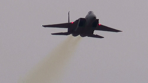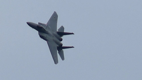 編隊の合間は戦闘機が埋めますよ!まずはF-15!高速で突っ込んできます!