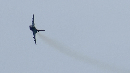 これ、タッチ&ゴーからの急上昇です。この高度でもうこんな垂直になってます。ノータンクのF-15、ヤヴァいです;パイロットさんだいじょうぶかー!!