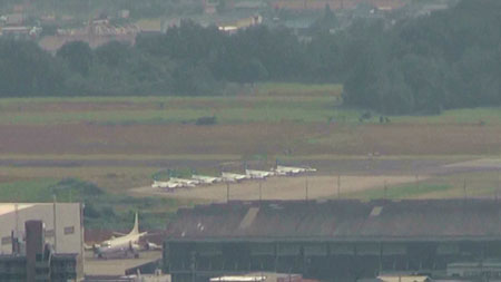 はいー、エンジンスタートしたようです。今年はなんだか機体の前にいっぱい人がいますね。関係者とか家族への公開みたいな形をとったのかな??
