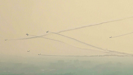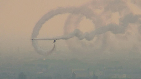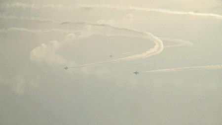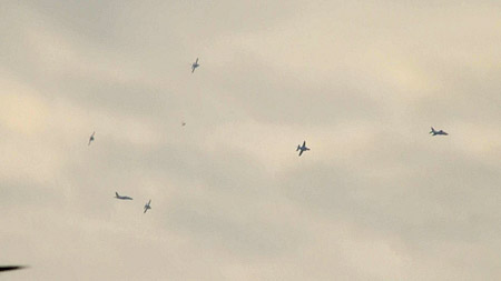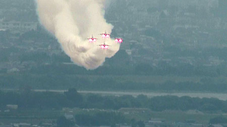 そして空に散開!これは水平区分じゃなきゃ見れないシーンでしたね!(*^ー^*) なんか、7コ黒い点が写ってますが、気のせいです。一コはトンボかなんかです;;