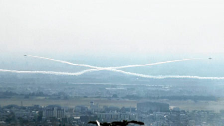 稜線を掠めて編隊が!!レターエイトに向かいます。あれ?去年は西の方からだったのに今年は東から進入。区分の関係で実はこの辺もちょっと違うのかな?