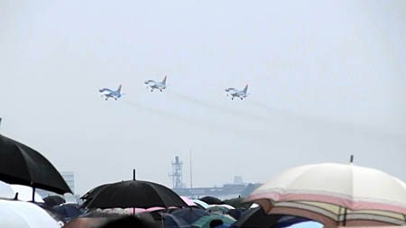 正直、個人的にはF-15も含めて空自の機動飛行デモはアメリカ空軍のデモチームより面白いような気がします。こんな飛行を、サンダーバーズの前でばっちり披露して貰えて、なんだか自分のことのように誇らしかったです。だって5年前はことごとく中止で、バーズに見せられなかったもんね!凄いヒコーキと空自パイロットの凄い操縦とお客に見せつけるすごい構成、どうですか、バーズの皆さん!負けてないでしょ??(^▽^