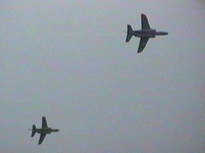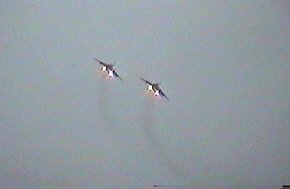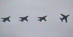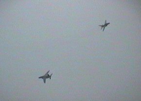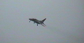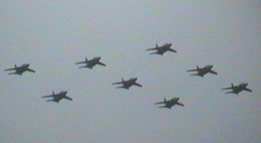 T-4がハイアングルテイクオフで次々に離陸しました。全部で14機。