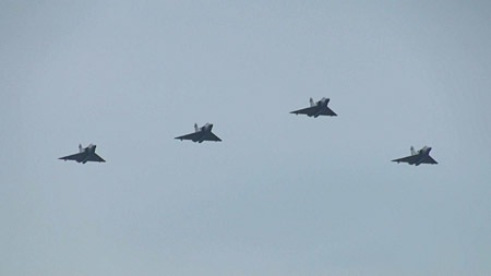 さあ、そうこうしてる内に来ました!ミラージュ4機の編隊です!分列式とのこと、フライバイで開会式のような感じですね♪