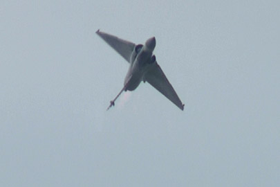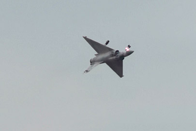 続いては早速元気の良いフライトです、ミラージュ2000のデモです!離陸からいきなりロールを打ってきます!