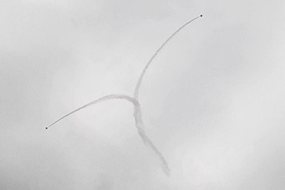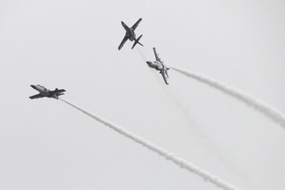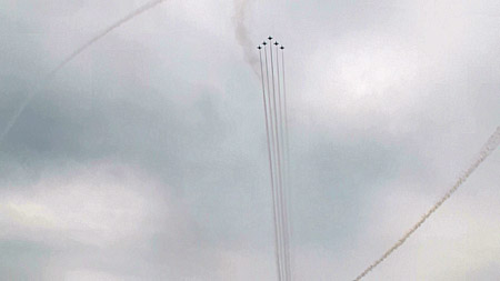 コークスクリューもやってまーす。ヨーロッパっぽい味のする課目もけっこうありました。2機がタイミングをずらしてらせん状にロールする、激しいコークスクリューでした。
