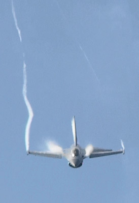 これまた激しくロールしてるのかな、なんか、今度は垂直尾翼付け根からベイパーが。これまた今までに見たことのない感じです。