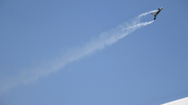 あー。展示飛行、終わっちゃった。展示機が帰っていきます。