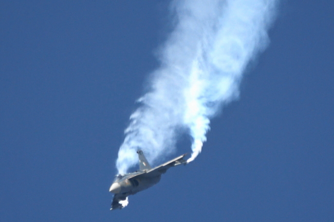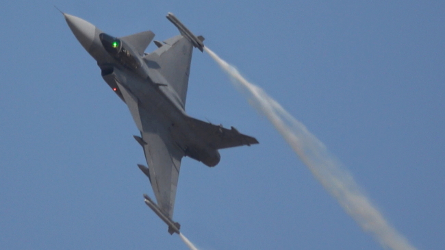 そしてこれ、スウェーデン空軍から参加のグリペンです。インド空軍の新たな単発戦闘機導入計画への売り込みのため、直接殴り込んできました。JAS39Eがその候補ですが、Eはまだ初飛行していませんので、フライトはCです。