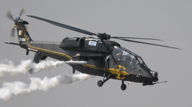 これもインド国産、LCHです。ライトコンバットヘリコプター。スモークを引いて良い飛行でした。